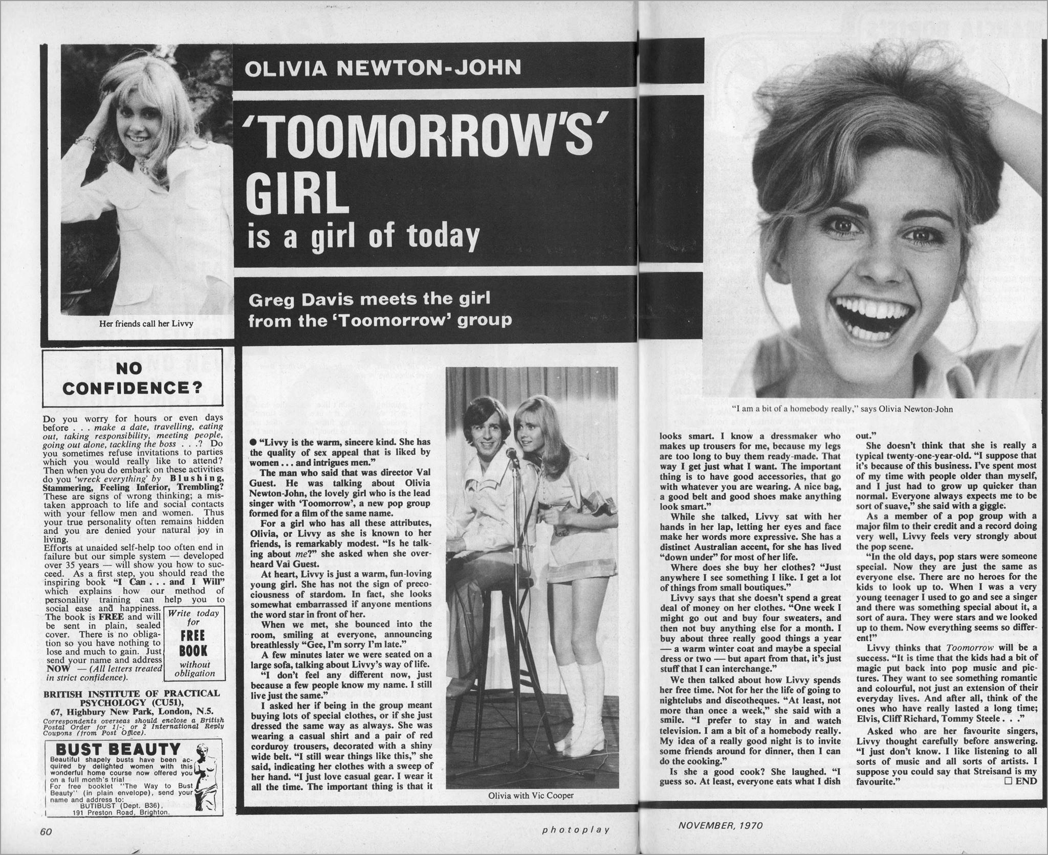 The man who said that was director Val Guest. He was talking about Olivia Newton John, the lovely girl who is the lead singer with Toomorrow