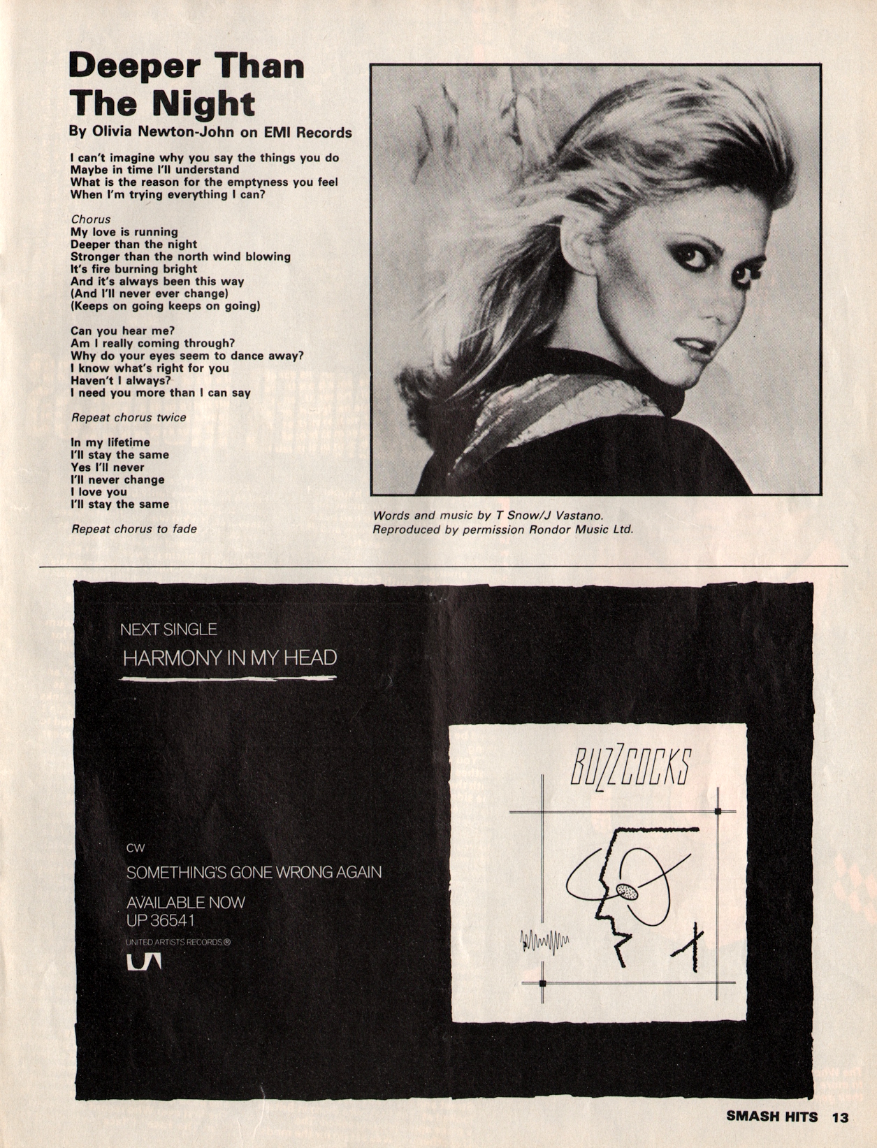 Deeper Than The Night lyrics 70s thanks to Like Punk Never Happened - Brian McCloskey's Smash Hits archive Click to enlarge.