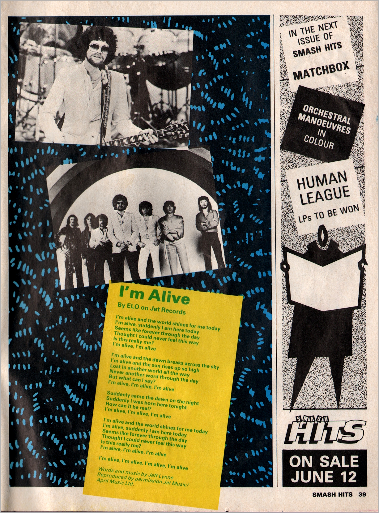 The I'm Alive by ELO lyrics are from the May 29 1980 issue of Smash Hits magazine.