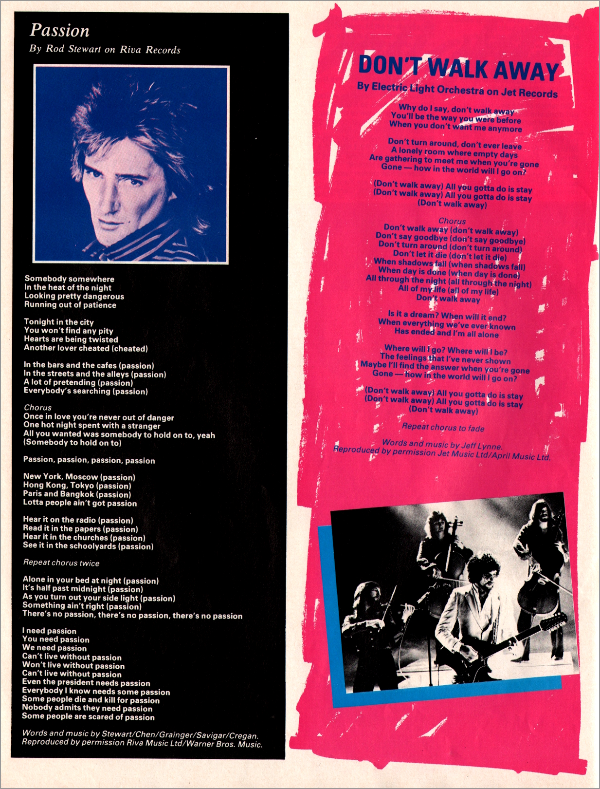 The Don't Walk Away by ELO lyrics are from the Nov 13 1980 issue of Smash Hits magazine.