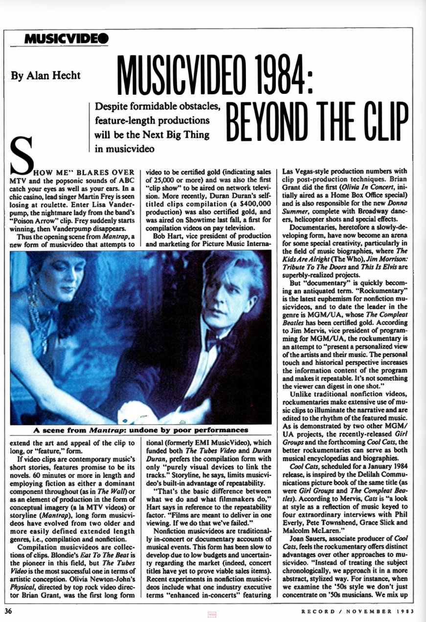 to be aired on network television. More recently, Duran Duran's self-titled clips compilation (a $400,000 production) was also certified gold, and was aired on Showtime last fall, a first for compilation videos on pay television.