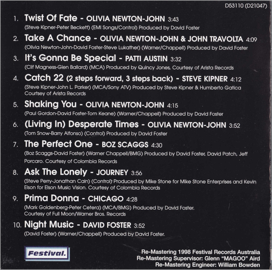 - Night Music (performed by David Foster)