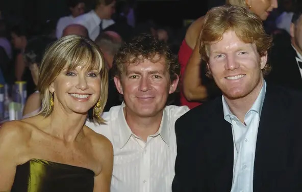 Olivia Newton-John (from left), tenor Peter Brocklehurst and tennis legend Jim Courier attend the Australian Open Centenary Ball on Jan. 29, 2005 in Melbourne. By Kristian Dowling/Getty Images