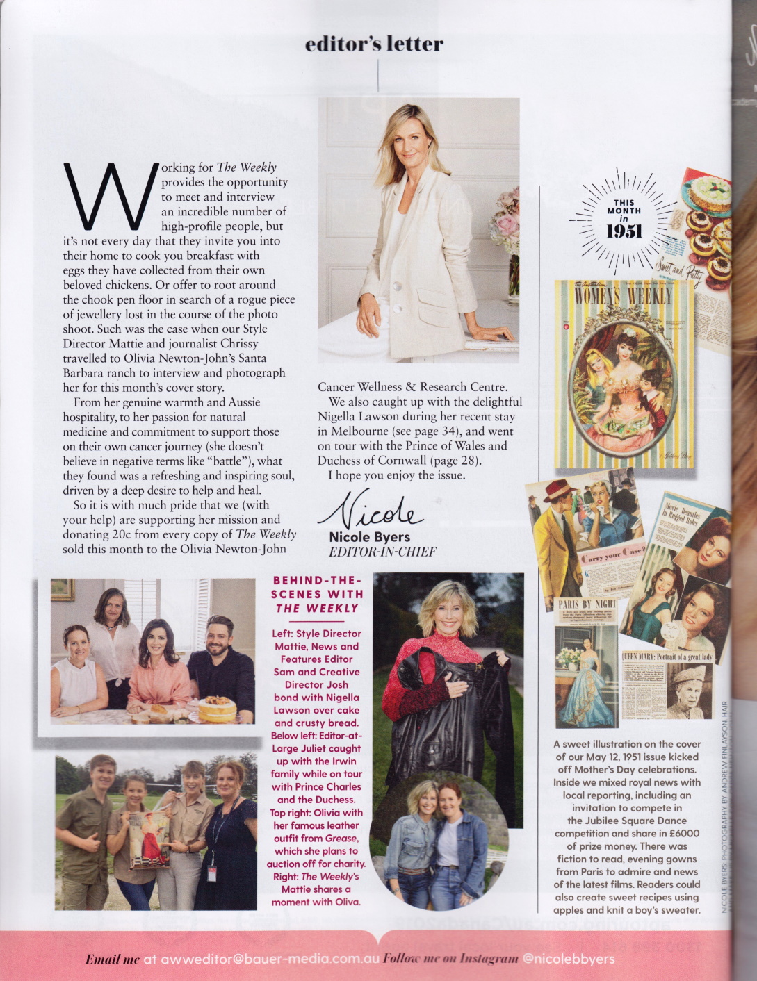 Olivia Newton-John is in her kitchen - she lives on a ranch just outside Santa Barbara - making pancakes with eggs from her chickens. We hug hello like we’ve always known each other, which doesn’t seem in the least bit weird because I have always known her. Who hasn’t? Who didn’t love her in Grease? Who doesn’t know all those songs? Who hasn’t lived and breathed her various life-altering traumas: her breast cancer 25 years ago, her broken relationships, her unstoppable spirit, her bravery and her defining warmth?
