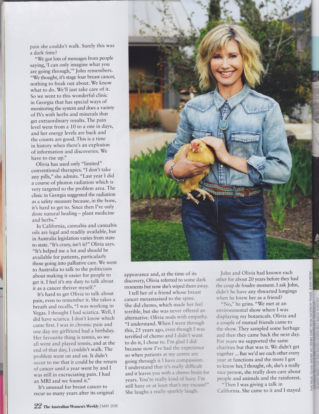 Olivia says. It’s helped me a lot and should be available for patients, particularly those going into palliative care. We went to Australia to talk to the politicians about making it easier for people to get it. I feel it’s my duty to talk about it as a cancer thriver myself.