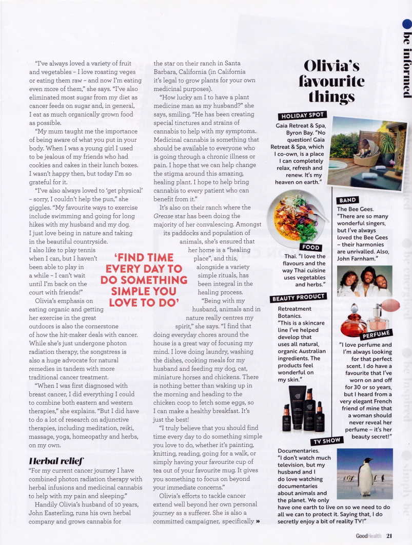 It’s also on their ranch where the Grease star has been doing the majority of her convalescing. Amongst its paddocks and population of animals, she’s ensured that her home is a healing place, and this, alongside a variety simple rituals, has been integral in the healing process. Being with my husband, animals and in nature really centres my spirit,