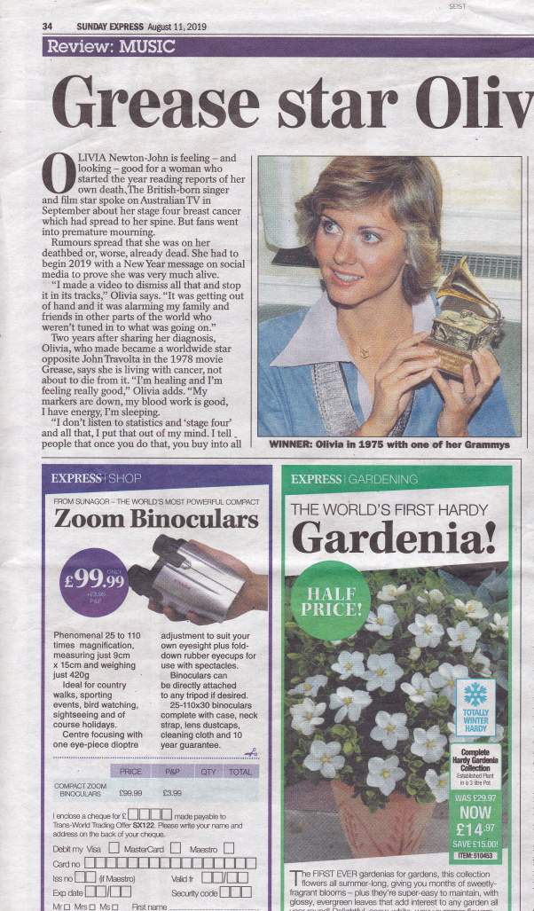 OLIVIA Newton-John is feeling – and looking – good for a woman who started the year reading reports of her own death. The British-born singer and film star spoke on Australian TV in September about her stage four breast cancer which had spread to her spine. But fans went into premature mourning.