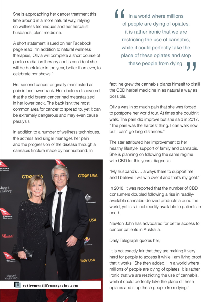Olivia turns to CBD Oil - Retirement Life Magazine
