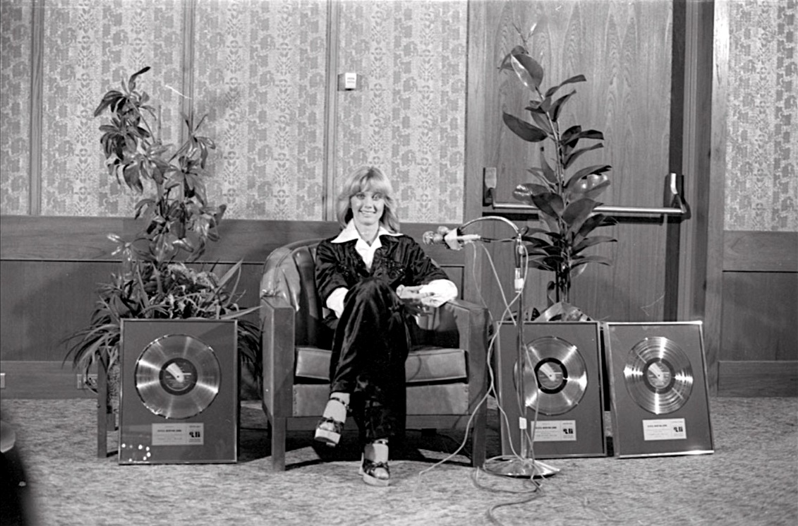 Two years later, Newton-John scored global success as co-star with John Travolta in the movie Grease, but at that time, she was dominating the Billboard Pop, Country and AOR charts when she was feted by MCA during a Calgary concert appearance.