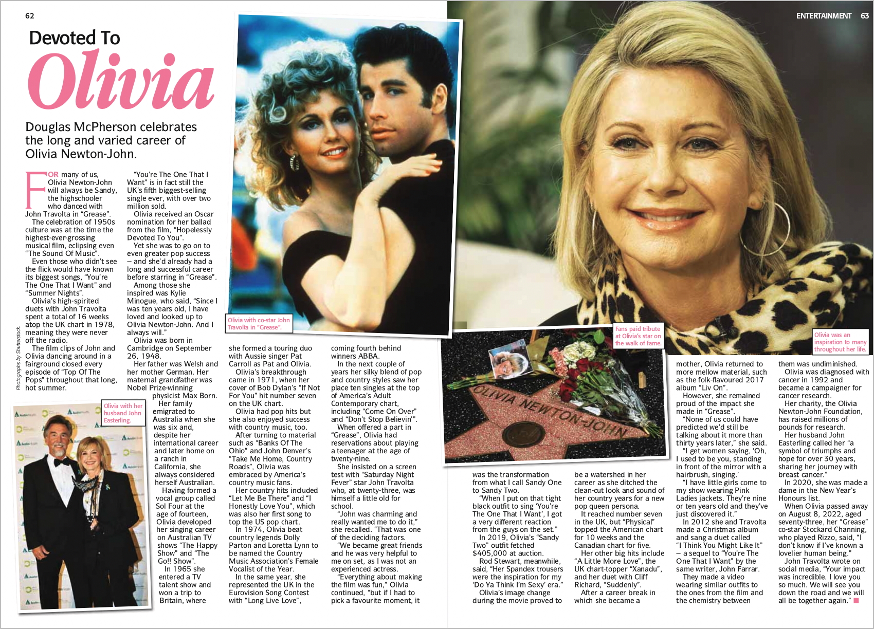 So I was really sad recently to hear of the death of its star, Olivia Newton-John. On page 62, Douglas Mcpherson pays tribute to her inspiring life and career.
