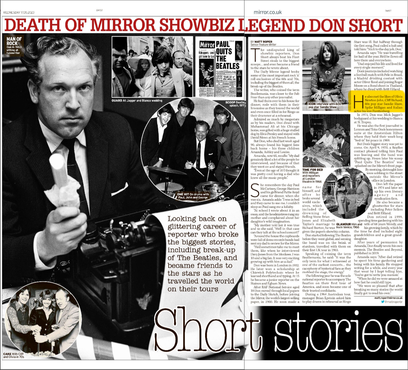 Death of Don Short - Daily Mirror