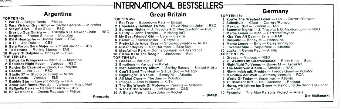packages by Barry Manilow and Steve Miller Band which entered the chart at #50 bullet and #86 bullet respectively. Olivia Newton-John's new album Totally Hot