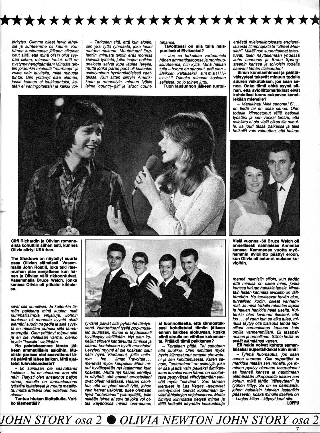 The Shadows have played a large part in Olivia's life. On the left is John Rostill, who committed suicide shortly after he and Olivia broke up. On the left is Bruce Welch, to whom Olivia was engaged for a long time.