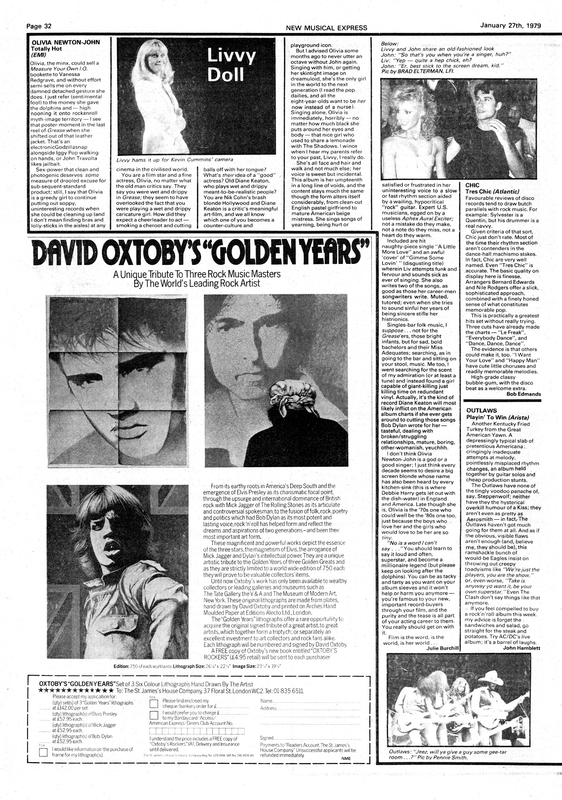 Snarky Julie Burchill lets the cat's claws out, with some great one-liners, if not great foresight. Burchill's predicted storied movie career for Olivia was not to be, where her next solo album Physical was a huge success.