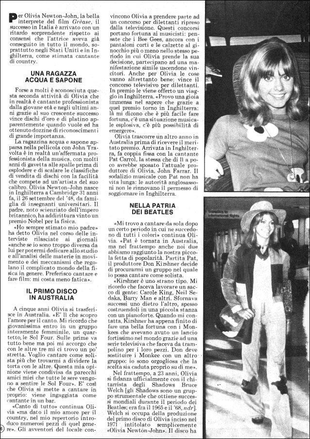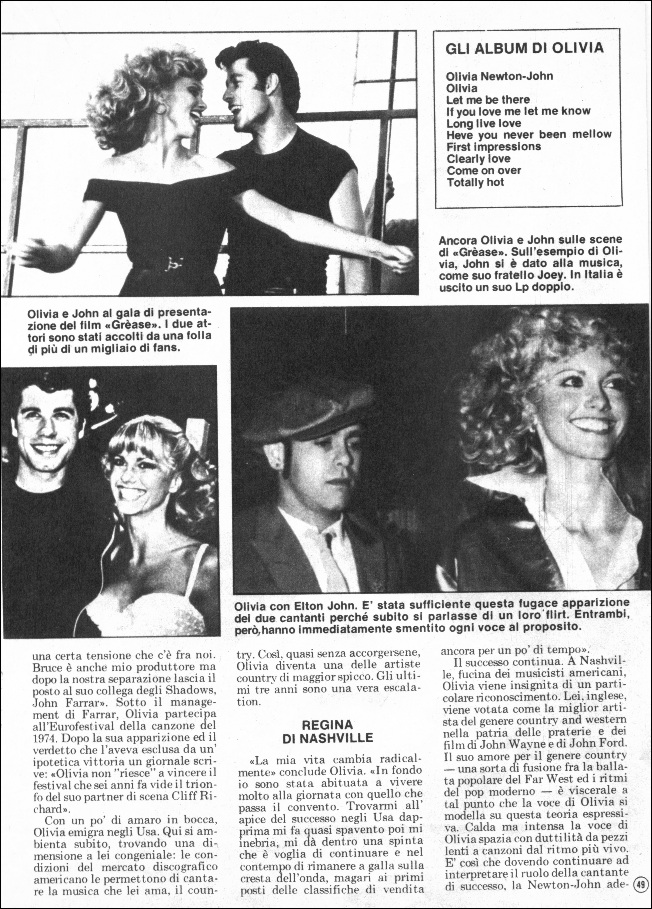 For Olivia Newton-John, her huge success in Italy came surprisingly late compared to the acclaim the actress had already achieved around the world, especially in the United States and England, as a respected country singer.