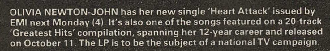 OLIVIA NEWTON-JOHN has her new single Heart Attack