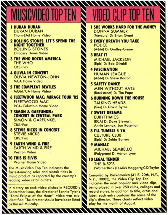to be aired on network television. More recently, Duran Duran's self-titled clips compilation (a $400,000 production) was also certified gold, and was aired on Showtime last fall, a first for compilation videos on pay television.