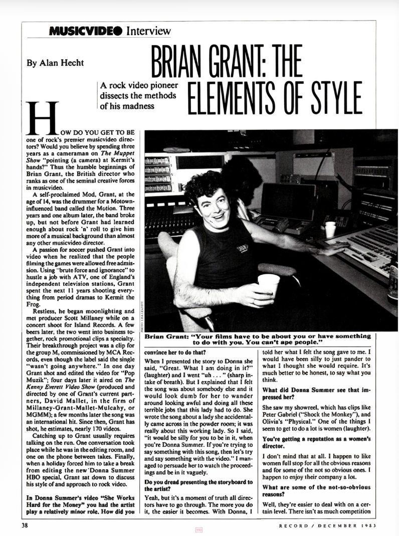 I've just been commissioned to do another one-hour piece with Olivia Newton-John. With Physical, it was purely a question of having ten clips from an album and slamming them together into a compilation. What we're doing with this one is writing an entire story first with all the scenes worked out. Then Olivia and Roger Davies are going to find songs to fit the piece. So it's gone the other way around. It'll be a thriller shot in the Caribbean and Australia next summer. And it'll be conceptual from beginning to end.