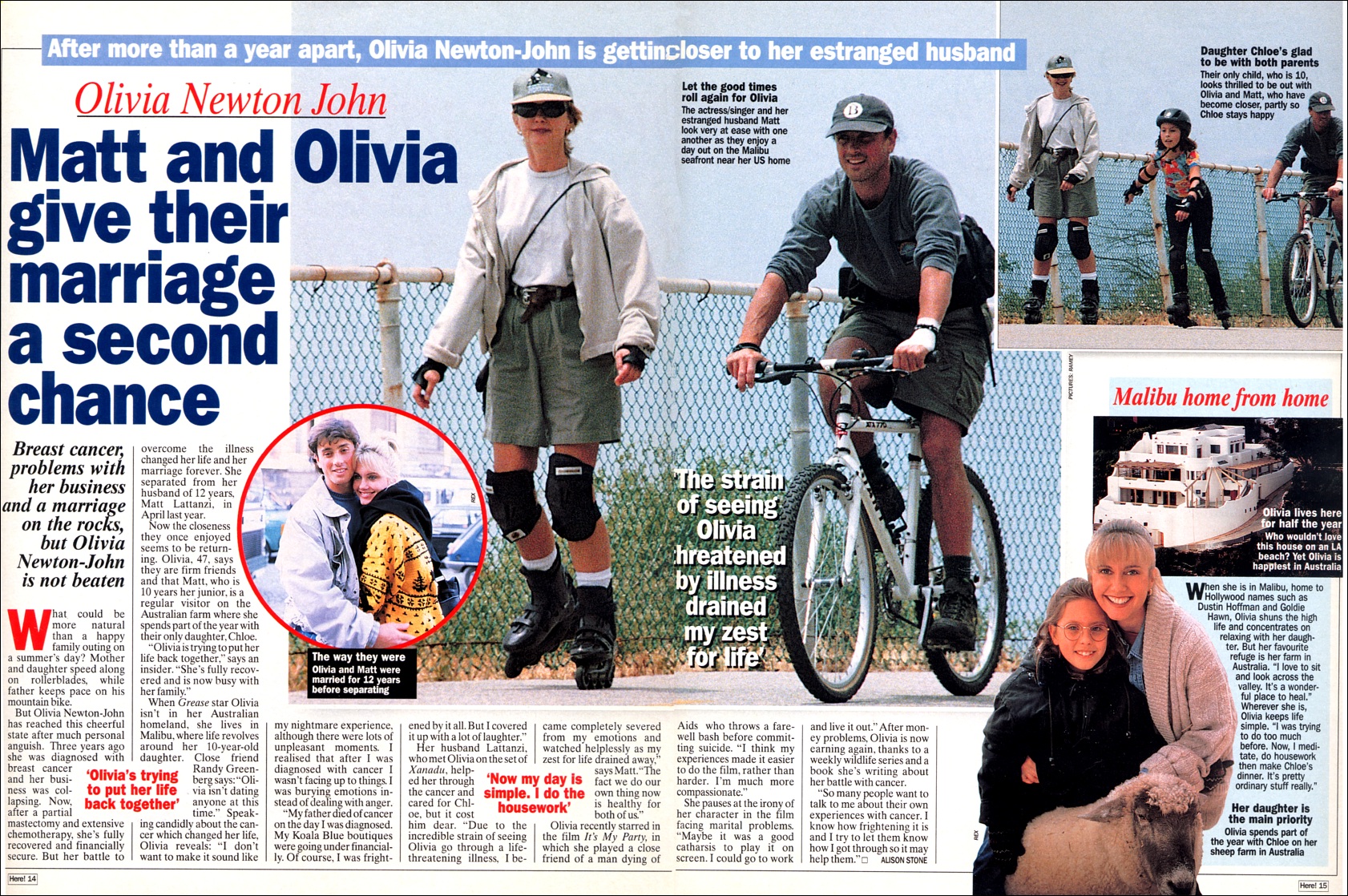 Her husband Lattanzi, who met Olivia on the set of Xanadu, helped her through the cancer and cared for Chloe, but it cost him dear. Due to the incredible strain of seeing Olivia go through a life-threatening illness, I became completely severed from my emotions and watched helplessly as my zest for life drained away," says Matt.