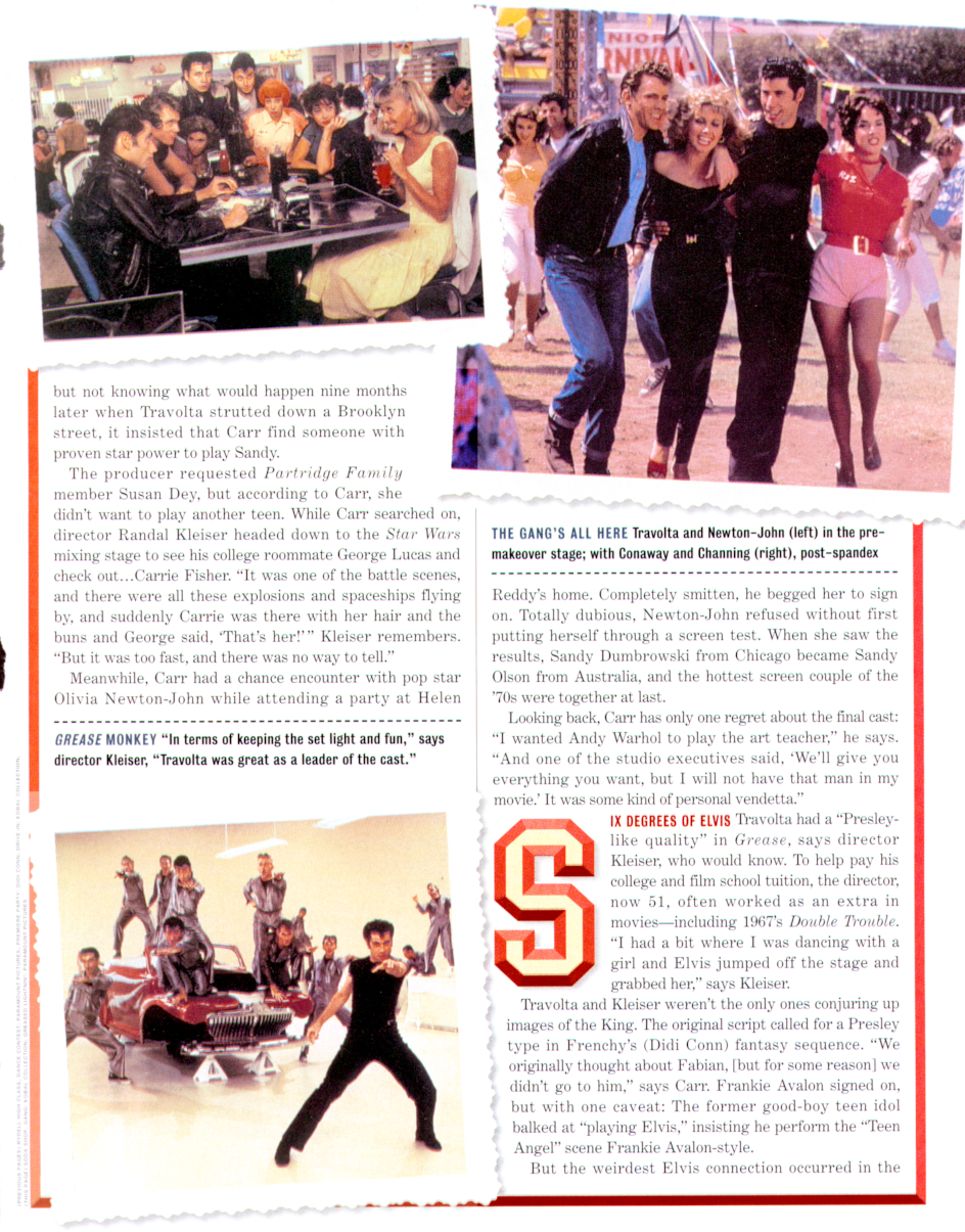Travolta and Kleiser weren't the only ones conjuring up images of the King. The original script called for a Presley type in Frenchy's (Didi Conn) fantasy sequence. We originally thought about Fabian, [but for some reason] we didn't go to him,