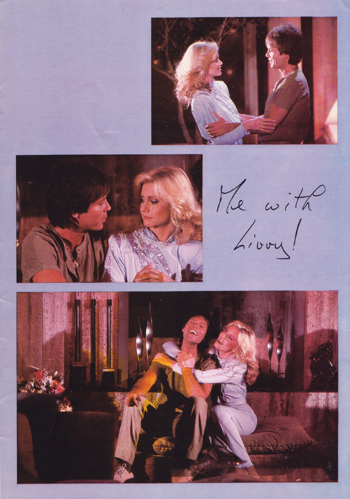 In February/March I toured South Africa[...] Frome South Africa I flew to Los Angeles, where I appeared in Olivia Newton-John's TV show Hollywood Nights. After that Olivia and I recorded "Suddenly" for her LP Xanadu. As you know I have always enjoyed signing with Olivia, and it was simply wonderful to meet up with her again.