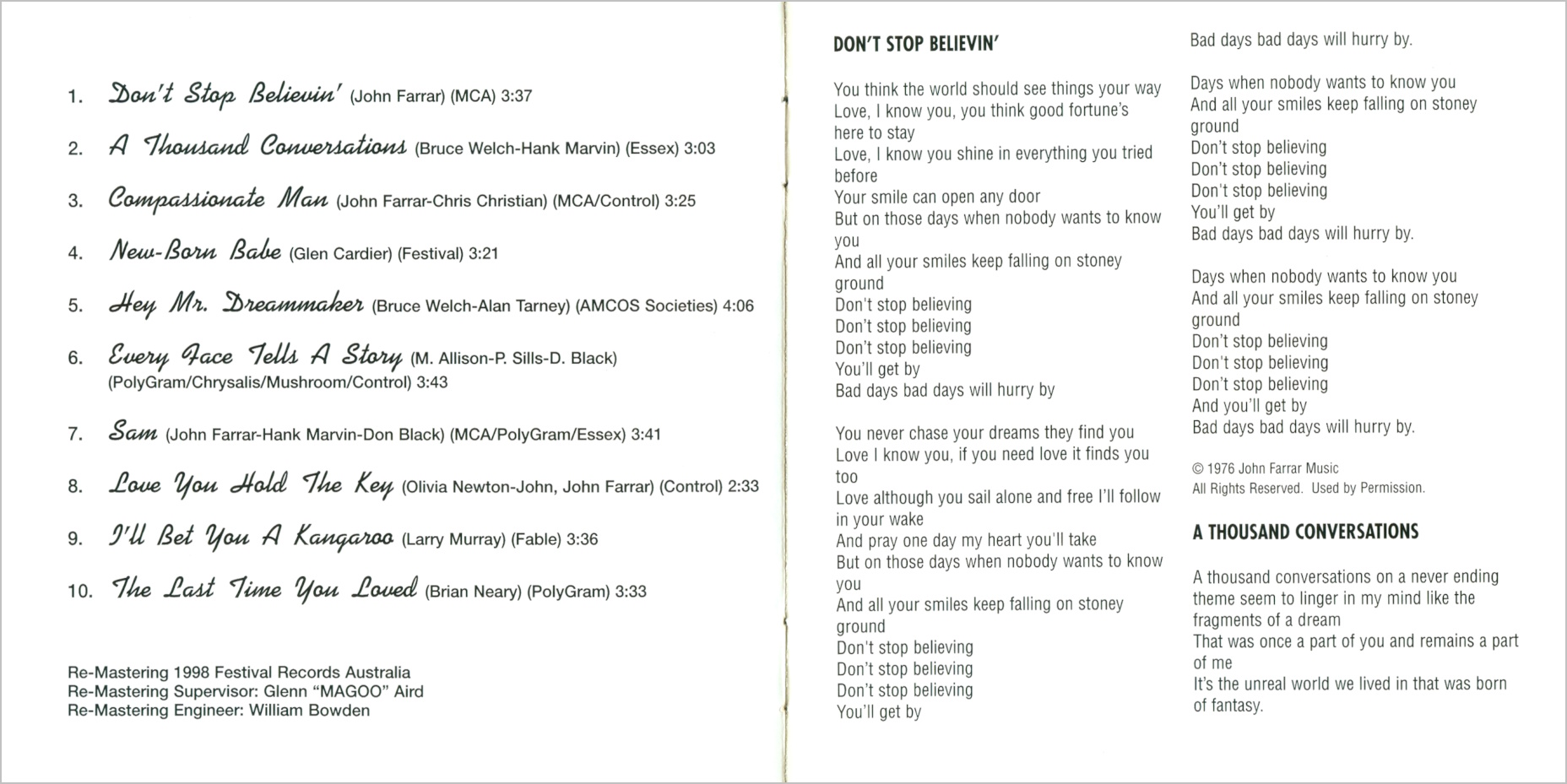 Olivia's albums, up to and including 1989's Warm and Tender album, were remastered and released onto CD in Australia back in 1998 by the Festival label.