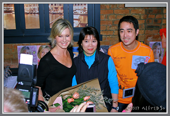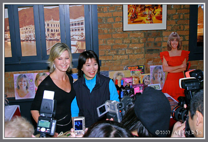 There was a press conference the day before the concert, Hong Kong fan Camellia was asked to bring her Olivia fan collection and the press used some of the photos to illustrate the background to the story. Camellia and other fans met Olivia after the concert, and there wasa good fan presence in the front row.