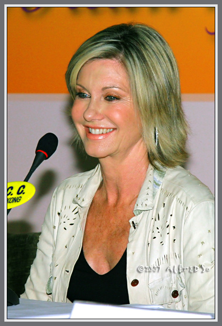Macau is a beautiful tiny island very near to Hong Kong and mainland China. Olivia was invited to Macau to make her "handprints" for the Star World Hotel. She officiated the ceremony by "lighting up" using a "star" and answered some questions from the media. She said she enjoyed the services of the hotel - had a nice bubble bath while enjoying the night view of Macau from her room the night before. She would visit the casino at the hotel, just to look around as she doesn't gamble.