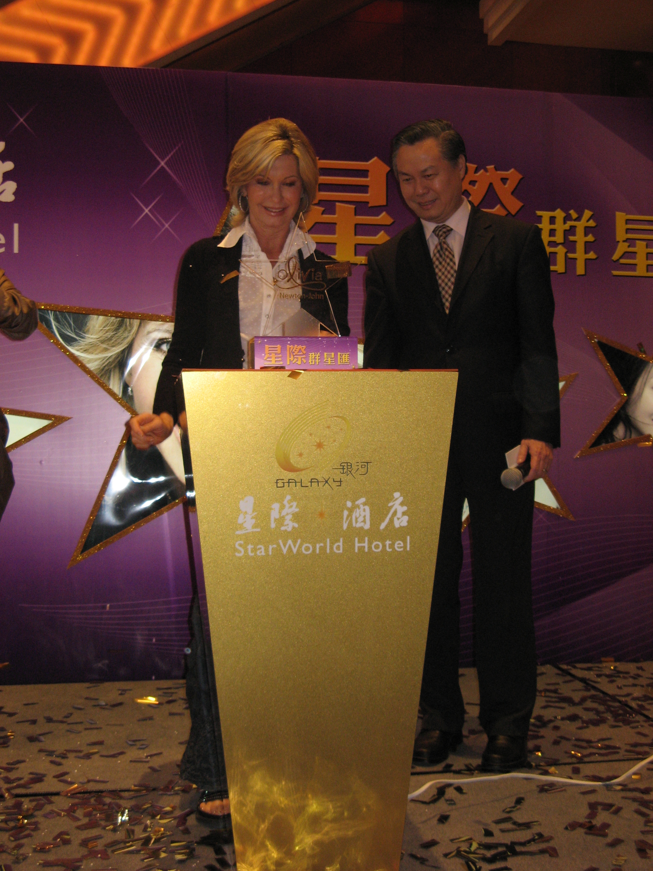 Olivia stayed a few days after the concert for a celebrity ceremony at the Star World Hotel, Macau