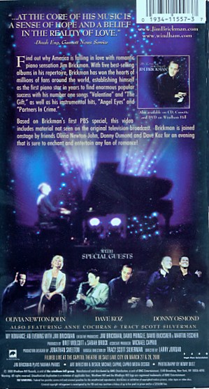 This concert was recorded live at the Capitol Theatre in Salt Lake City, Utah on March 27 and 28 2000. Olivia performs three songs with Jim Brickman on piano: Change of Heart, Valentine and I Honestly Love You. There's also a short out-take featuring Olivia over the end credits of the video and DVD.