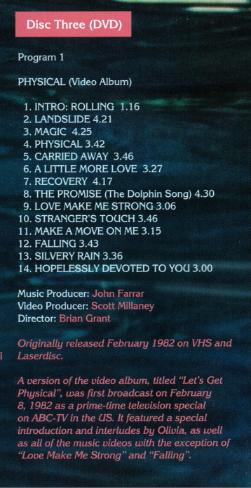 For the 40th anniversary of Physical a deluxe three disc edition of the album was released. The third disc is this DVD featuring the Physical Videogram Special and the 1982 Physical Utah concert. The later has never been available on DVD before. The Physical videos were released on DVD in 2005 as part of the Gold DVD collection.